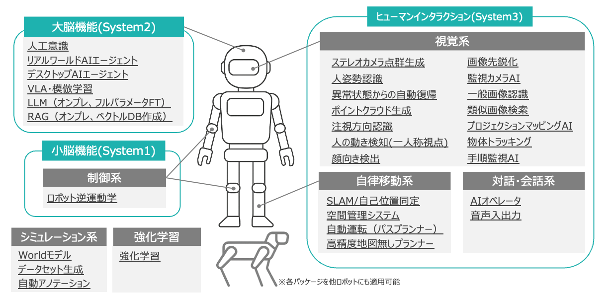 および、ロボットハードウェアの設計・統合、サービス設計、制御システム設計等