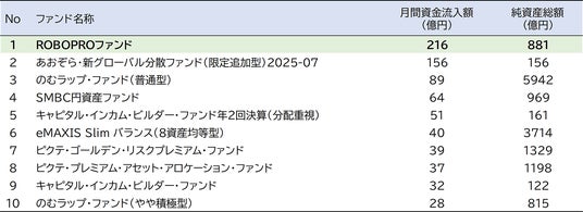 ※ 期間:2025年7月(月間)、月間資金流入額は推計値