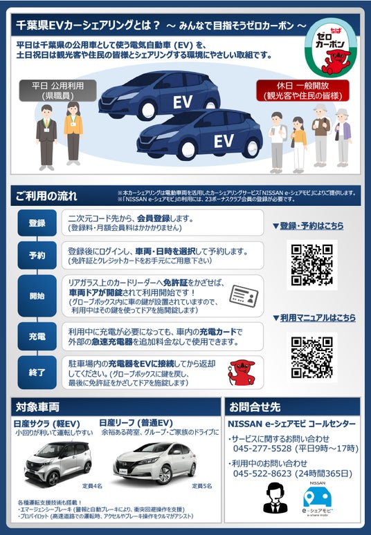 当社および株式会社日産カーレンタルソリューション(本社:神奈川県横浜市西区、代表取締役:岡本智)が千葉県より運営を受託する、公用車EVカーシェアリングモデル事業が2026年4月1日より開始されることをお知らせいたします。