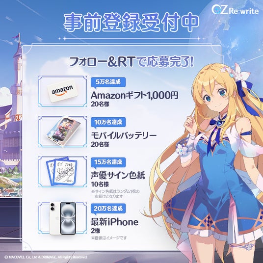 また、DRIMAGEならびにDRIMAGE JAPANは「オズリラ」事前登録開始記念キャンペーンを実施します。