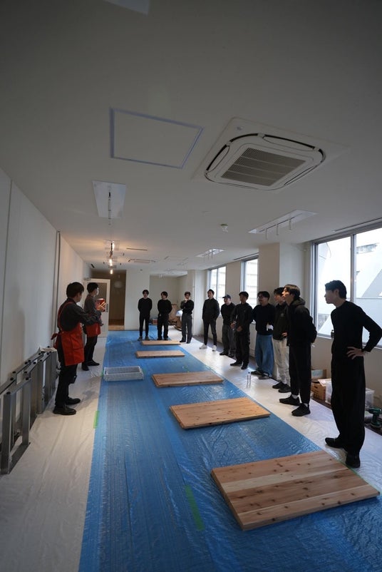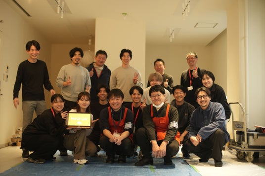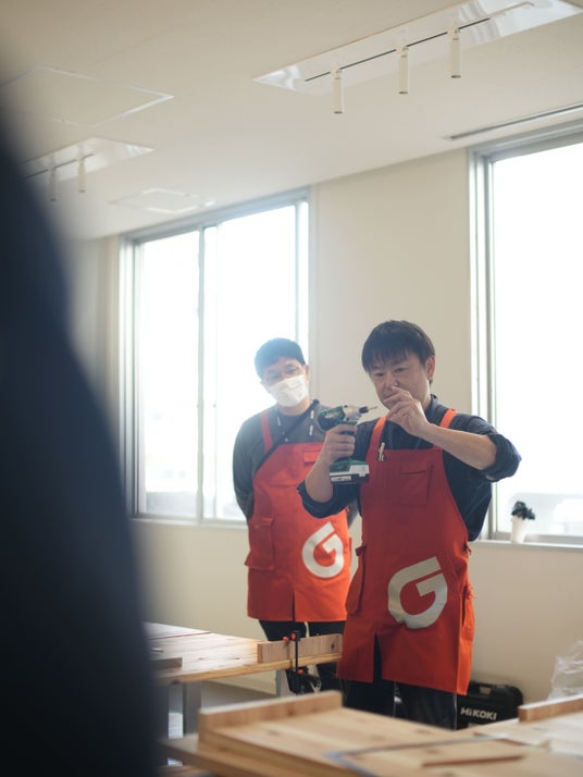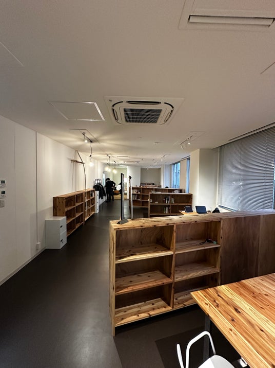 本拠点では、開設プロセスそのものを「再生(リジェネラティブ)」と「共創」の実践の場と位置づけ、オフィス什器を既製品で揃えるのではなく、関係者自らの手で制作しました。設計・資材調達・制作指導は、団地リノベーション事業などで既存ストックを活かした空間再生に取り組んできた嘉穂無線ホールディングス株式会社(ホームセンターグッデイ)が担当。FNP参画企業およびKBCグループ社員が共同で本棚や机のオフィス什器を製作しました。また、この取り組みを契機として、KBCグループが持つ地域との繋がり、FNP参画企業が持つクリエイティビティ、グッデイのDIY技術・知見を融合させた「地域で自走するDIYプロジェクト」について、小さな実証から取り組みを開始することで合意しました。建築・不動産再生を通じて地域に活力を注ぎ込む「リジェネラティブなDIY」の社会実装を目指し、今後議論と検証を重ねてまいります。