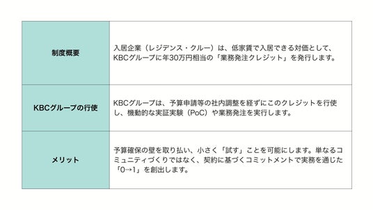 ~参画企業とKBCグループの共創を加速させる、独自の「クレジット制度」を導入~