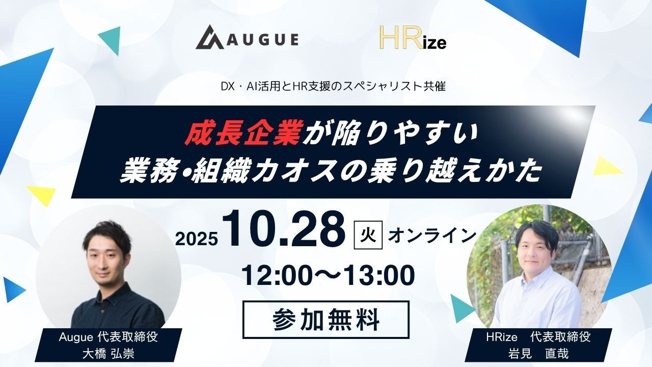 組織採用支援のHRize(代表:岩見 直哉)はAI・DX推進に強みを持つ株式会社Augueと共同で、2025年10月28日(火)に成長企業に向けたウェビナーを開催します。