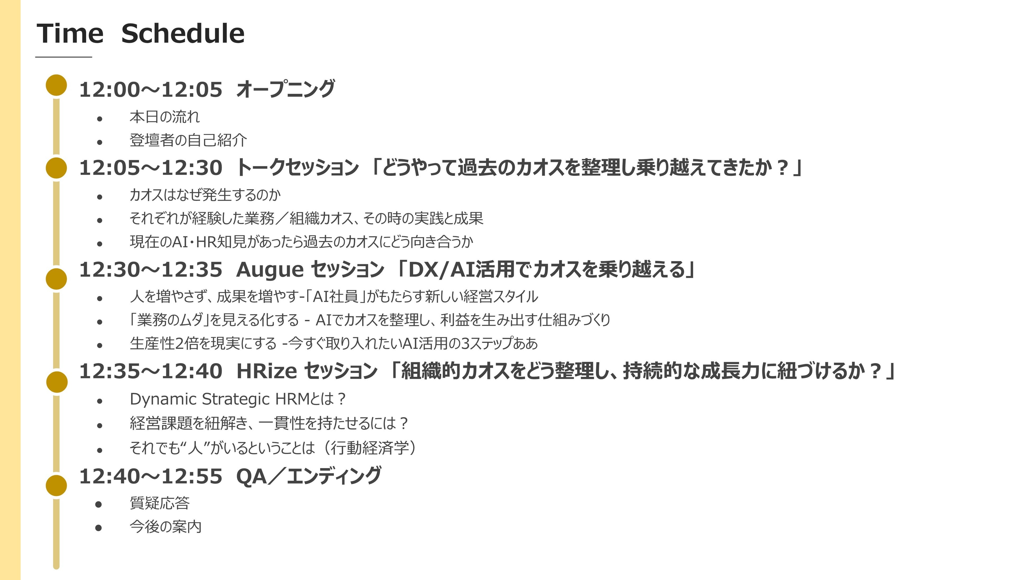本セッションでは、業務整理×AI・DX導入(Augue)と人と組織の最適化(HRize)の両側面から、