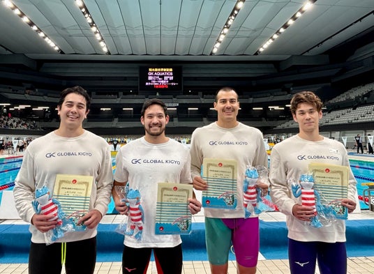 - その他の実績弊社の競泳チーム「GK AQUATICS」は、マスターズ水泳大会で、世界記録3種目、日本新記録7種目を樹立。弊社代表の尾関ミゲル源および尾関ブルーノ健二もチームの記録に貢献しました。