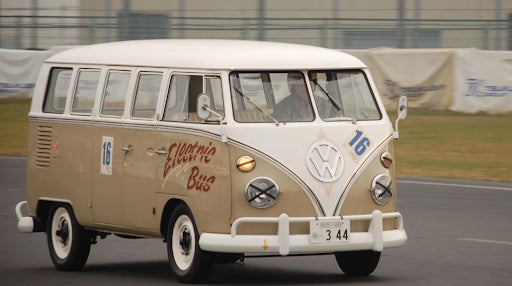 MIYOSHIは2008年、フォルクスワーゲン Type2のエンジンをモーターに載せ替え、環境にやさしい電気自動車(EV)へと改良する「コンバートEV」に挑戦しました。車両整備やハーネス加工、ペイント塗装など、多くの協力者の力を結集し、日本初の電気自動車ワーゲンバスを完成。エンジン車をモーター駆動へとコンバートし、耐久レースやサーキット走行に挑んだこのプロジェクトは、当時、大きな注目を集めました。