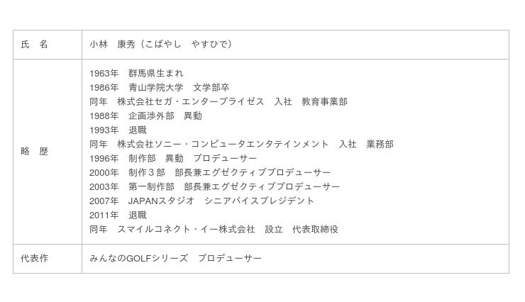 当社は、1999年の創業よりゲームを中心に様々なプラットフォーム、様々なジャンルでの「楽しい」を創出し続けてきました。創業20年を超えた今、更なる成長のため社外取締役として、元株式会社ソニー・コンピュータエンタテインメント JAPANスタジオ シニアバイスプレジデントである小林康秀氏を迎えることにしました。