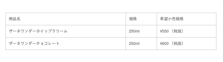 ○ザーネワンダーホイップクリームは乳脂肪26%、ザーネワンダーチョコレートは乳脂肪24%。