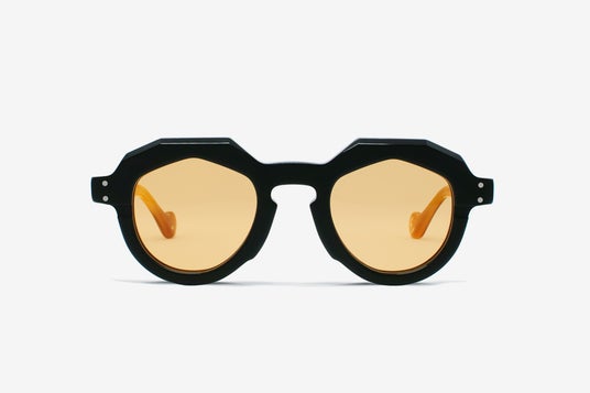 アレンジした部分としては、フロント上部のカッティング、フロント下部耳側の凹凸、フロントとテンプルの生地をバイカラーに変更など、Jean氏が自身のブランドで培った技術を駆使しています。