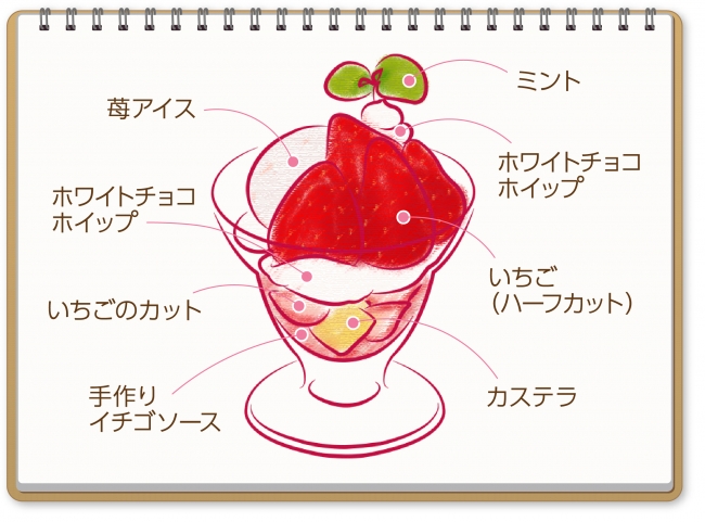 旬のいちごに加え、お店で手作りしたイチゴソースもトッピングしました。