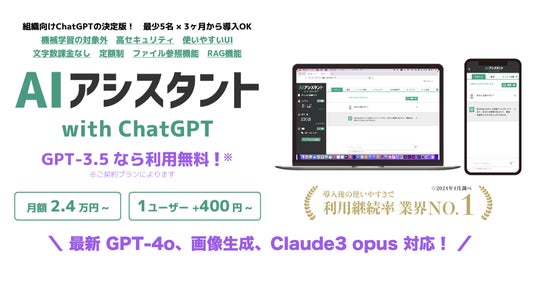 ChatGPT法人利用パッケージ「AIアシスタント」 GPT-4o、Claude3対応。GPT-3.5無料