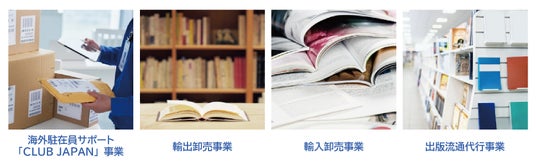 事業内容:海外駐在員サポート「CLUB JAPAN」事業、輸出卸売事業、輸入卸売事業、出版流通代行事業