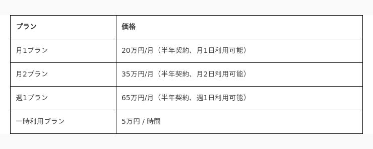 ・8時から24時まで16時間のスペース貸切付き(別途スペースの利用料は不要です)