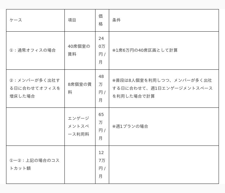 ■メンバーが多く出社する日に限りオフィスを増床した場合と、通常オフィスの賃料比較
