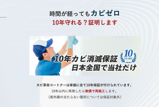 カビ革命コートナーはお客様に安心いただけるように10年保証を付けています。