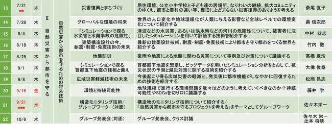 1.東京工業大学 環境・社会理工学院の教員等による講義で都市づくりに関するテーマを学びます。