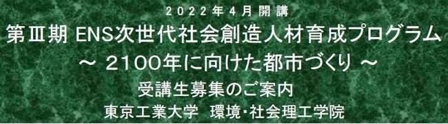 【お問合せ先】東京工業大学 ENS次世代社会創造人材育成プログラム事務局