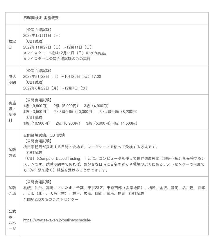 【 第50回検定記念 鹿児島市特設会場概要 】
