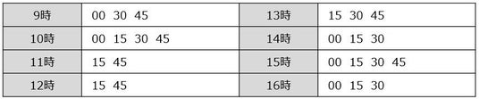 【荻規模駅西口(発)時刻表(平日・土曜・日曜・祝日共通)】