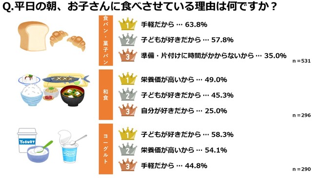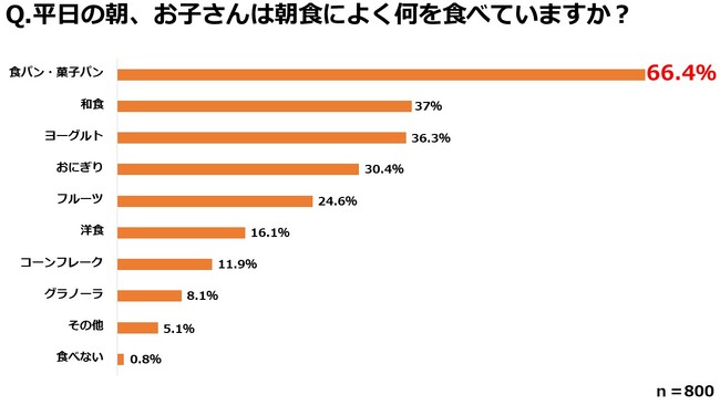 平日の朝ごはんで食パンや菓子パンを食べているお子さんは66%、忙しい朝に嬉しい手軽さが理由トップに
