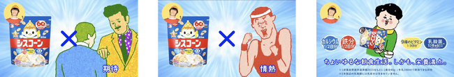 「シスコーンのかけ算」篇では、シスコーンに組み合わせたら美味しいものを紹介しており、思わず笑みが溢れるユニークな組み合わせも紹介。「売上No.1家族」篇では、少し昔な雰囲気を感じさせるシスコーンが大好きな家族が登場し、コンフレーク売上No.1ブランド※1であることを伝えていきます。
