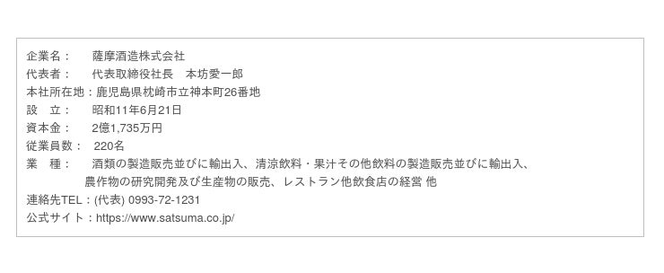 焼酎造りの世界にも技術革新が進む中、昔ながらの技法で造られた『枕崎』が最高金賞に選ばれたことは薩摩焼酎文化を大切に受け継いできた薩摩酒造にとって大変栄誉なことであり、薩摩酒造は、今後も薩摩焼酎を通して、鹿児島から日本、日本から世界へ焼酎文化のさらなる発信に努めてまいります。