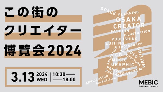 「この街のクリエイター博覧会2024」は、大阪に根付くクリエイターたちが集結し、各自の強みや得意技・サービスなどを発信するクリエイターの祭典です。デザイン、Web、映像、写真、イラスト、漫画、アニメーション、ゲーム、CG、音楽、建築、ライティング、出版、印刷など、さまざまな分野のクリエイターが出展します。また、関連企画として、企業とクリエイターとがコラボを生み出す秘訣や、クリエイターの生き残り方をテーマにしたトークイベントも同日開催されます。