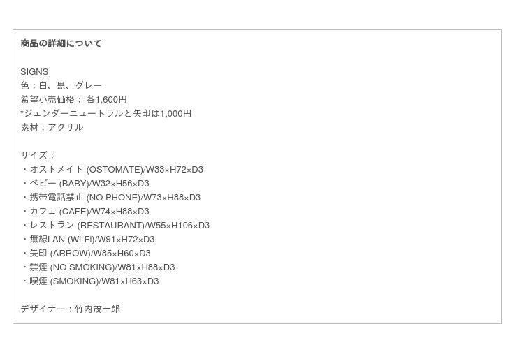 今回新たに、OSTOMATE&BABYのセット、 NO PHONE、 CAFE、 RESTAURANT、 Wi-Fi、 ARROW(矢印)、 SMOKING、 NO SMOKINGの8種がラインナップに加わり、SIGNSはさらにバラエティー豊かに、 選択肢と組み合わせが広がります。