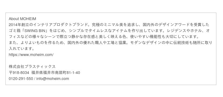 ご購入は、全国のMOHEIMの取り扱い店、もしくはこちらのオンラインストアからどうぞ。