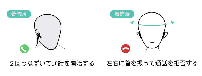 6軸センサーを搭載。着信時に頭の動きだけで通話のオン/オフの操作が可能です。