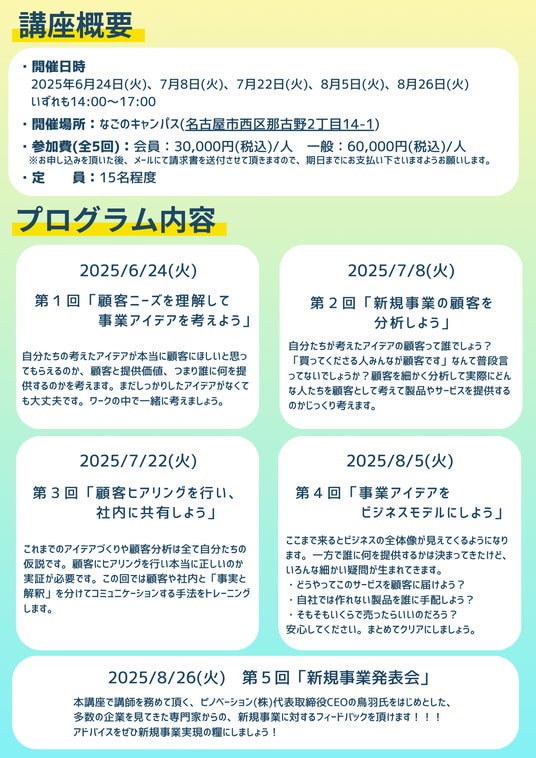 ・参加費(全5回):名古屋商工会議所会員:30,000円(税込)/人 一般:60,000円(税込)/人