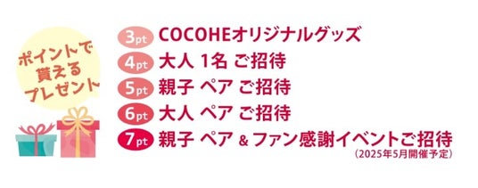 3ポイントでCOCOHEオリジナルグッズをプレゼント。