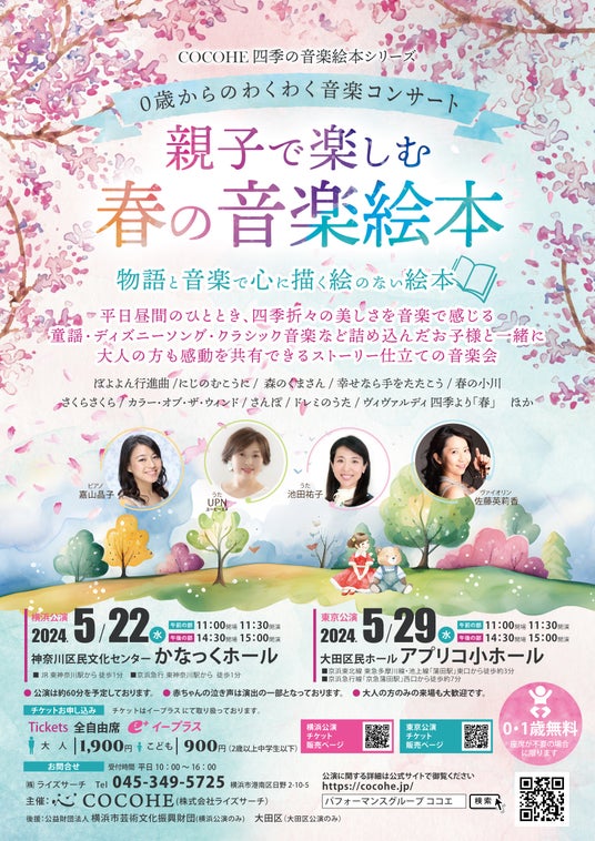 0歳からのわくわく音楽コンサート「COCOHE」を運営する株式会社ライズサーチ(所在地:横浜市港南区 代表取締役 内田奈津子)は、2024年5月22(水)かなっくホール、29日(水)大田区民ホールアプリコ 小ホールにて開催する「親子で楽しむ 春の音楽絵本」より「不思議なポイントカード」のポイント配布をスタートします。