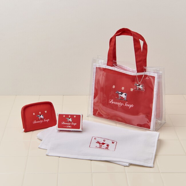 会場とオンラインショップにて新オリジナルグッズ「赤箱 スパバッグセット」を発売いたします。スパバッグセットは、Instagramの企画「みんなでつくる赤箱グッズプロジェクト」を通して赤箱ファンからあったら嬉しいと感じるグッズのアイデアを募集し、「浴場施設やサウナへ行くときに使える赤箱アイテムが欲しい」といった声が多かったことから開発されました。セットの中身は、スパバッグ・石けん持ち運びポーチ・タオル・カウブランド赤箱。「赤箱 AWA-YA in YOKOHAMA」の会場とAWA-YAオンラインショップ(10月中旬頃開催予定)でご購入いただけます。※1日の販売数には限りがあり先着順となります。