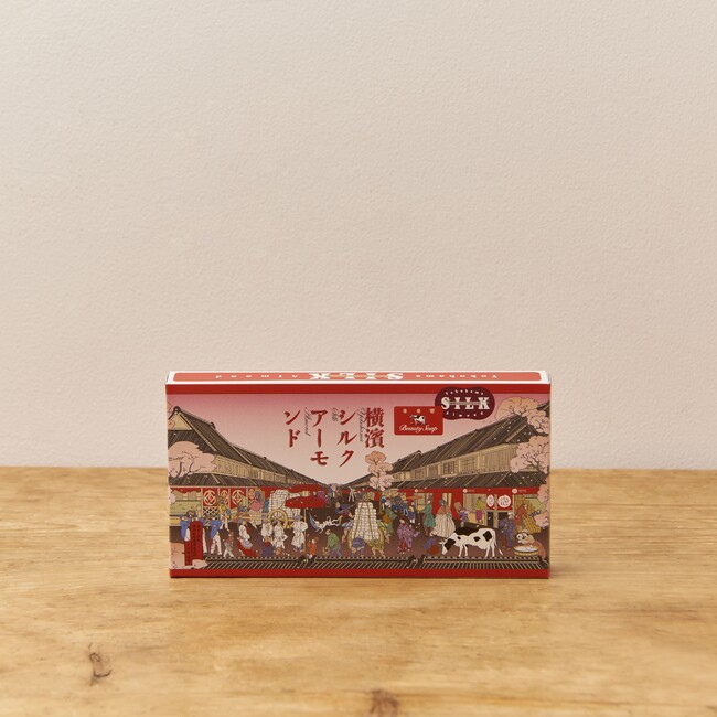 開港から昭和の初頭まで輸出品の多くが生糸だったという歴史を持つ横浜は「絹の都」とも呼ばれていたそう。その歴史を次世代へと残すために生まれたのが「横濱シルクアーモンド」。「赤箱 AWA-YA in YOKOHAMA」を記念して、特別版パッケージで販売します。カリッと香ばしく焼き上げたアーモンドを、シルクパウダーとミルクパウダーでカバーリング。1粒また1粒…、ほんのり甘く、あとを引くおいしさです。