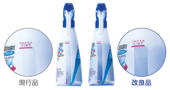 洗剤の残量が見やすいよう、ボトルを半透明に改良し、つめかえ時に注いだ量が分かりやすくなりました。