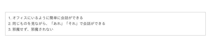 同じ「ルーム」にいる人たちと、画面を共有して話すことができます。また、ルームにいる人全員のマウスカーソルを見ることができるので、同じオフィスにいるように「あれ」「それ」「これ」と指差しながら会話することが可能となります。