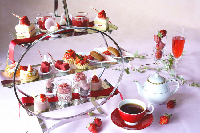 旬の苺をたっぷり使用した見た目にも可愛らしい苺尽くしのafternoontea
