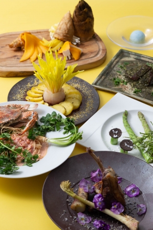 7色に彩られたフォトジェニックな旬の食材を使ったフルコース。7周年にちなんで7,000円でお楽しみいただけます。