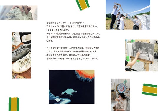 アトリエ e.f.t.は1998年4月の開校以来、「つくるを通していきるを学ぶ」を教育理念とし、アート