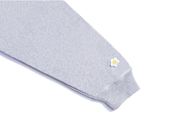 フーデッド、スウェットシャツともに、袖部分には定番のピースフラワーワッペンが施されています。スウェットシャツは、しっかりとした厚みのあるヘビーウェイトの生地を採用。