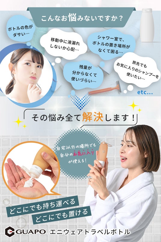 ゴールラッシュ合同会社(本社:大阪府大阪市/代表:河内康男)は、自宅以外の場所でも自分のお気に入りのシャンプーが使える詰替えボトルで、”どこにでも持ち運べる どこにでも置ける”をコンセプトにした「エニウェアトラベルボトル」を2024年2月8日(木)にAmazonで先行発売を開始しました。