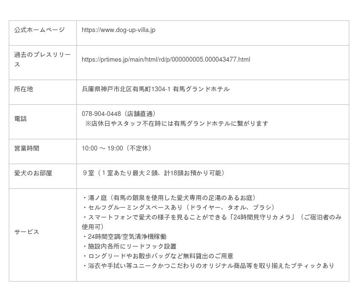 ●有馬グランドホテル『DOG UP VILLA(ドッグ アップ ヴィラ)』について