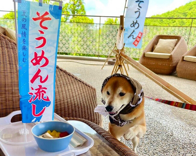 有馬グランドホテル『DOG UP VILLA(ドッグ アップ ヴィラ)』で大好評の「愛犬流しそうめん」(揖保乃糸など兵庫県産食材を使用)を2023年6月26日~8月31日の平日限定で開催します。