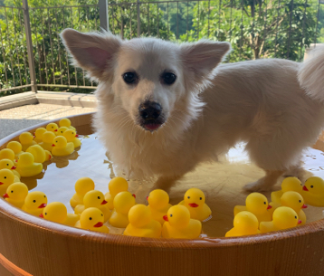 【今年初開催!】愛犬用特大桶風呂での「アヒル風呂」(写真スポットとしてご利用ください)