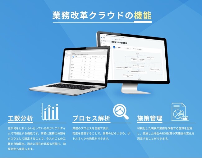 そんな業務改革の課題をクラウドサービスで手軽に、テクノロジーを用いて解決したい。そんな想いから「業務改革クラウド」の社名が生まれました。