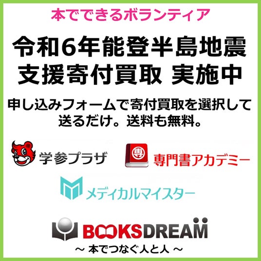 この期間(2024年1月20日~2024年2月29日)に、弊社が運営する「学参プラザ」「専門書アカデミー」「メディカルマイスター」の各買取サイトで弊社の買取品(参考書・専門書・医学書・大学の教科書・塾・予備校テキスト・教材など)をお売りいただくだけで、買取金額の5%相当額が全額弊社負担で被災地に寄付されます。