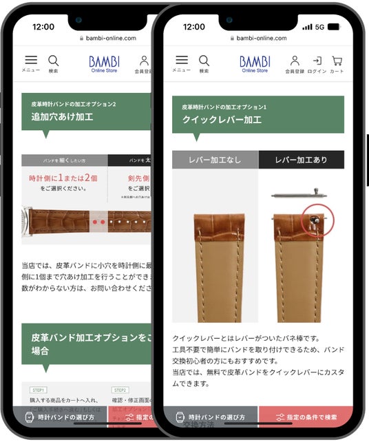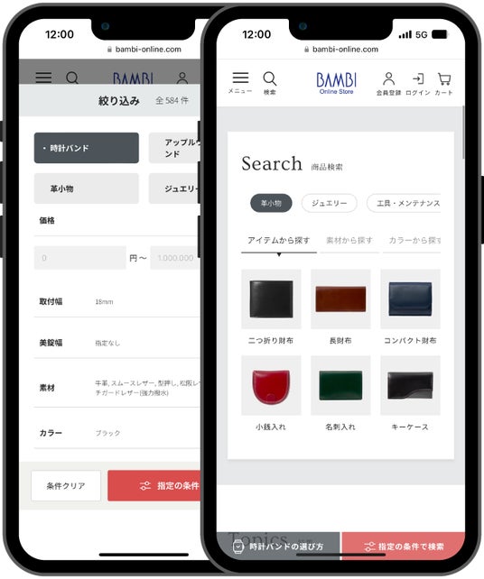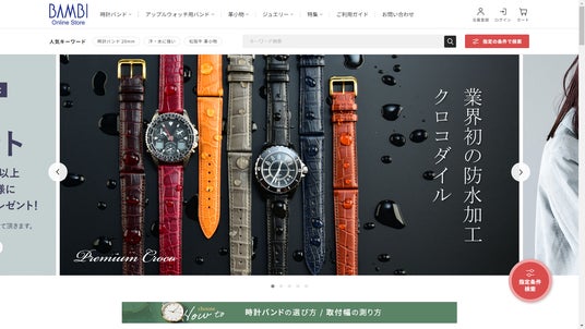 今回のリニューアルではサイト名を「BAMBI Craft」から「バンビ公式オンラインストア」へ変更、時計バンドやジュエリーなどの取扱商品を増やし、検索導線の見直しや、加工サービス、会員サービスなどの拡充を行いました。