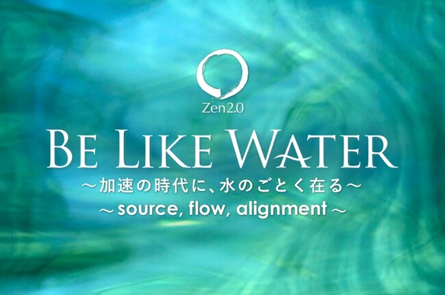 そのような環境下だからこそ、私たち一人ひとりがしっかり本来の自分・大切なコアの価値観(Source)に繋がり、そして水源から湧き出る泉が川となって流れるが如く、そこからのエネルギーで自然な流れ(Flow)が創り出され、そして、私たちのコミュニティ・社会・地球の中でそれぞれのパーパスに繋がったアクションに繋がり(Alignment)、広い海へと循環・浸透していく。 今年のZen2.0ではその想いを「BE LIKE WATER ~加速の時代に、水のごとく在る~ Source, Flow, Alignment」という言葉に込めました。