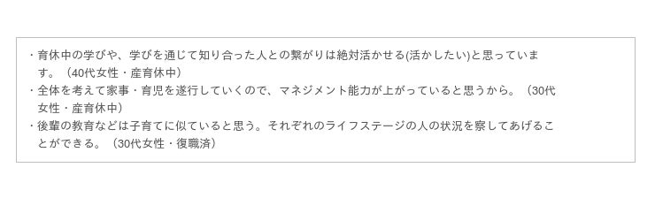 1.育休は空白期間ではない 「育休中の経験を仕事で活かせる」と答えた女性は8割